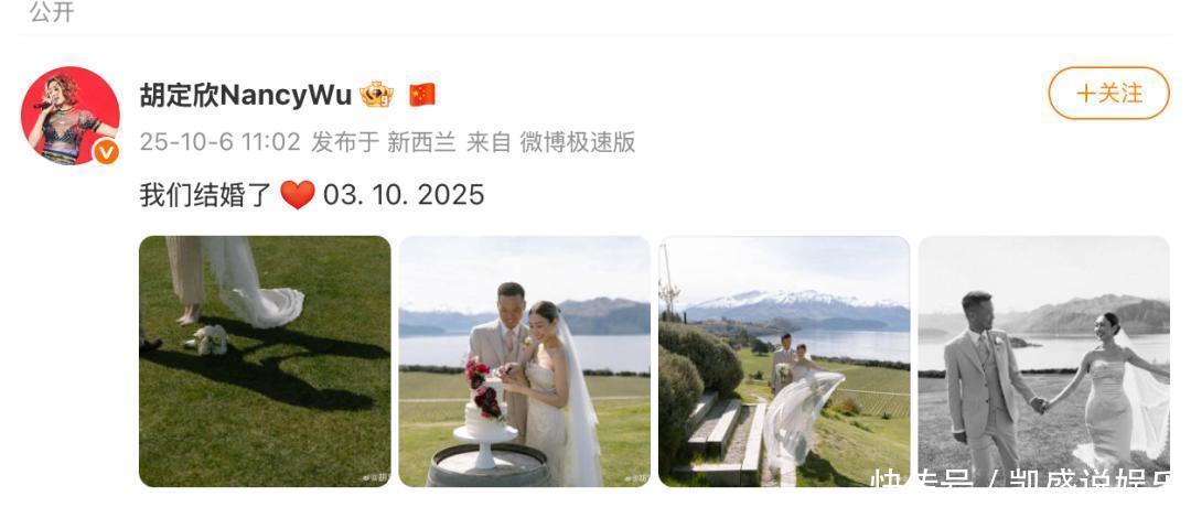 25年10月6日,胡定欣宣布结婚,配文:我们结婚了